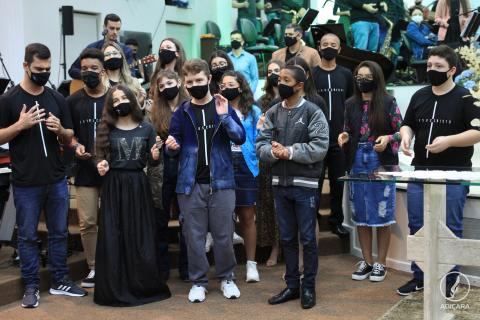 Na oportunidade entoaram os louvores a Orquestra Celebração, o Ministério de Louvor Kadosh e os aniversariantes.