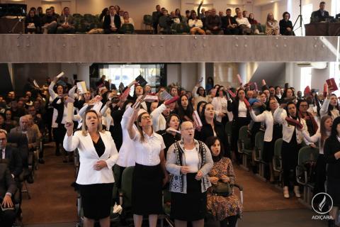 Um coral formado pelas mulheres da União Feminina AD Içara (UFADI) entoou a canção "A história da Assembleia de Deus".