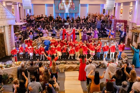 Em paralelo aos louvores foram realizadas apresentações. As crianças realizaram coreografias, além da apresentação com um coral de aproximadamente 30 componentes. A oficina da família foi responsável pelas encenações.