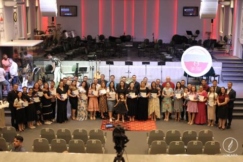 A coordenação regional de casais da 10ª região (Extremo Sul Catarinense) realizou a formatura do curso de líderes Lar Feliz no sábado, dia 04. O culto especial ocorreu no templo sede AD Içara e contou com a formação presencial de 18 casais. Alguns casais não puderam comparecer mas foram certificados em suas cidades. Veja as fotos.