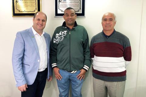 Pastor Hebrom Mussini, presidente AD Içara, e pastor Carlos Henrique, secretário do Ceifeiros, receberam o missionário Luiz Felipe na manhã desta quinta (07). Na oportunidade o missionário foi acolhido pela AD Içara, tendo em vista que retornou do campo missionário de Cabo Verde/África, juntamente com sua família, após oito anos de serviço ao Reino de Deus.