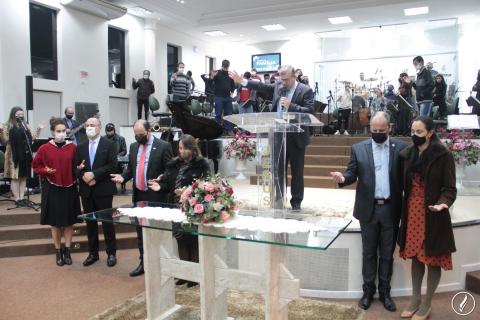 Próximo do encerramento do primeiro culto foi realizada uma oração por todos os pastores do templo sede e também por suas esposas. Pastor Hebrom Mussini recebeu uma placa de homenagem pela data. Evangelista Valdenir Berto, líder do templo central também foi presenteado.