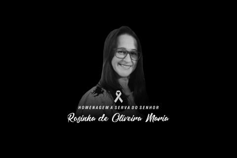 Noticiamos com pesar o falecimento da irmã Rosinha de Oliveira Maria (esposa do pastor Mário Sergio), ocorrido nesta sexta-feira (28), aos 48 anos. Irmã Rosinha fazia parte da diretoria da União Feminina AD Içara (UFADI), junto com pastor Mário Sergio pastoreava a congregação de Mineração. Há quase dois anos irmã Rosinha lutava contra um câncer. â €