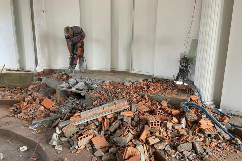 Todas as peças em madeira utilizadas na composição do antigo altar foram removidas e agora alguns locais em alvenaria precisarão ser removidos para o novo formato.