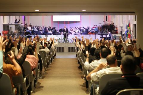 No sábado (18), a glória de Deus foi manifesta de forma poderosa na abertura do congresso geral, que contou com a participação das mulheres de todas as congregações da AD Içara. Aproximadamente 400 irmãs se uniram em um só propósito: buscar a presença de Deus. Canções de adoração e palavras inspiradas marcaram a noite, com a ministração do pastor Eduardo Lopes, presidente da AD Três Lagoas (MS), que trouxe uma mensagem impactante sobre a força da mulher que ora e persevera. Um dos momentos de maior emoção foi a apresentação de um grupo de percussão feminino, que, juntamente com o coral da UFADI, conduziu a igreja a um ambiente de profunda adoração.