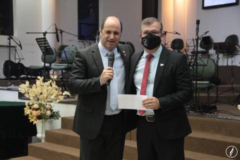 Pastor Hebrom Mussini, presidente da igreja agradeceu ao Senhor. "Sou grato a Deus por ter evangelista Valdeni aqui na sede nos auxiliando, também atuando como vice-presidente, sendo nosso braço direito", destacou.